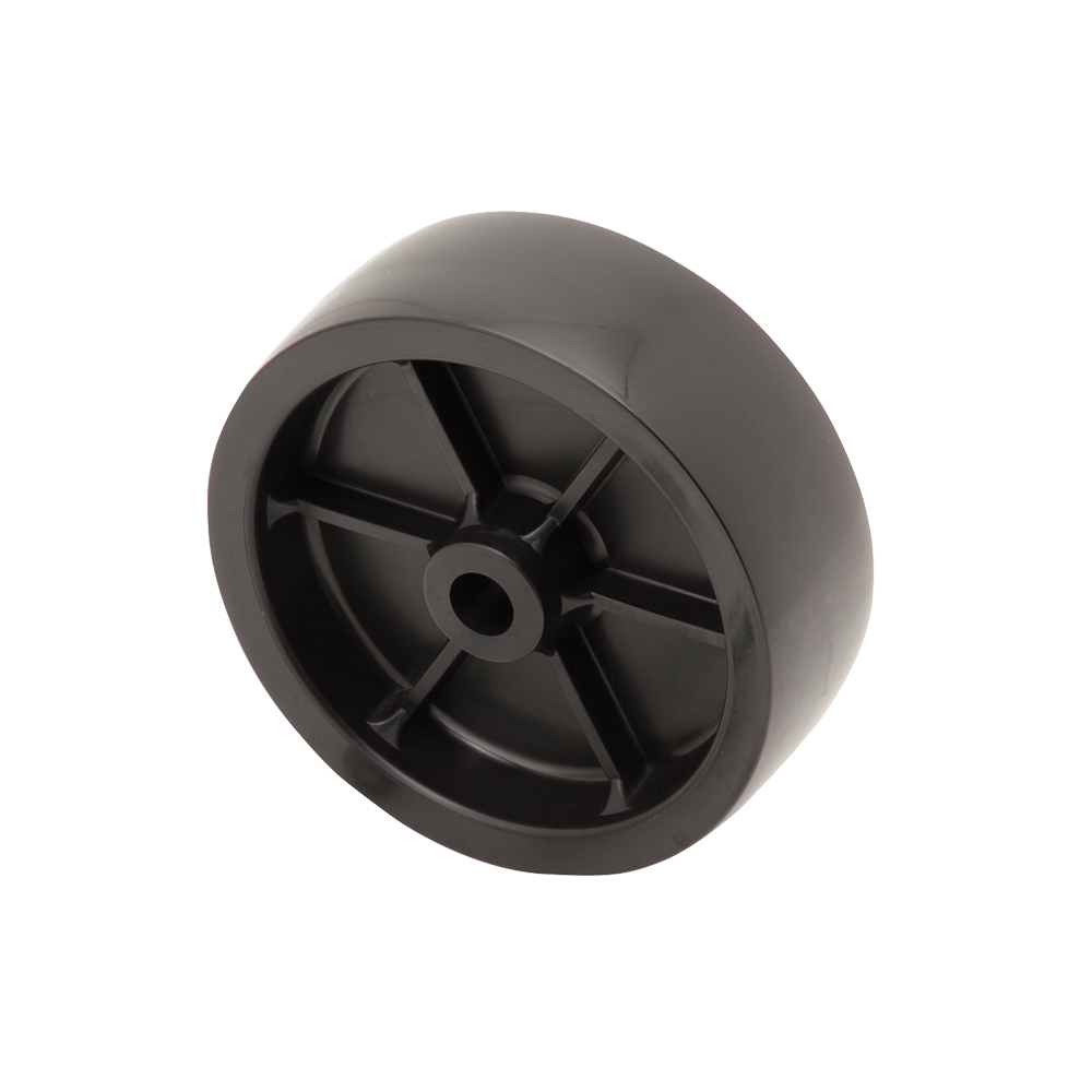 This item serves as a replacement for the 6" diameter poly wheel on your trailer jack, converting it into a caster.