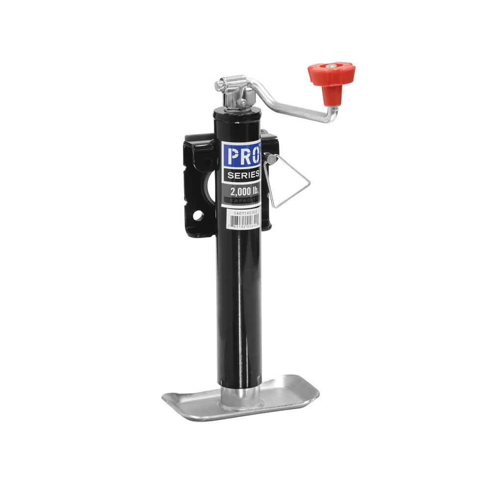 - 1401140303 Pro Series Round Trailer Jack, Side Mount, 2,000 lbs. Lift Capacity, Top Wind, Weld-On, 10 in. Travel