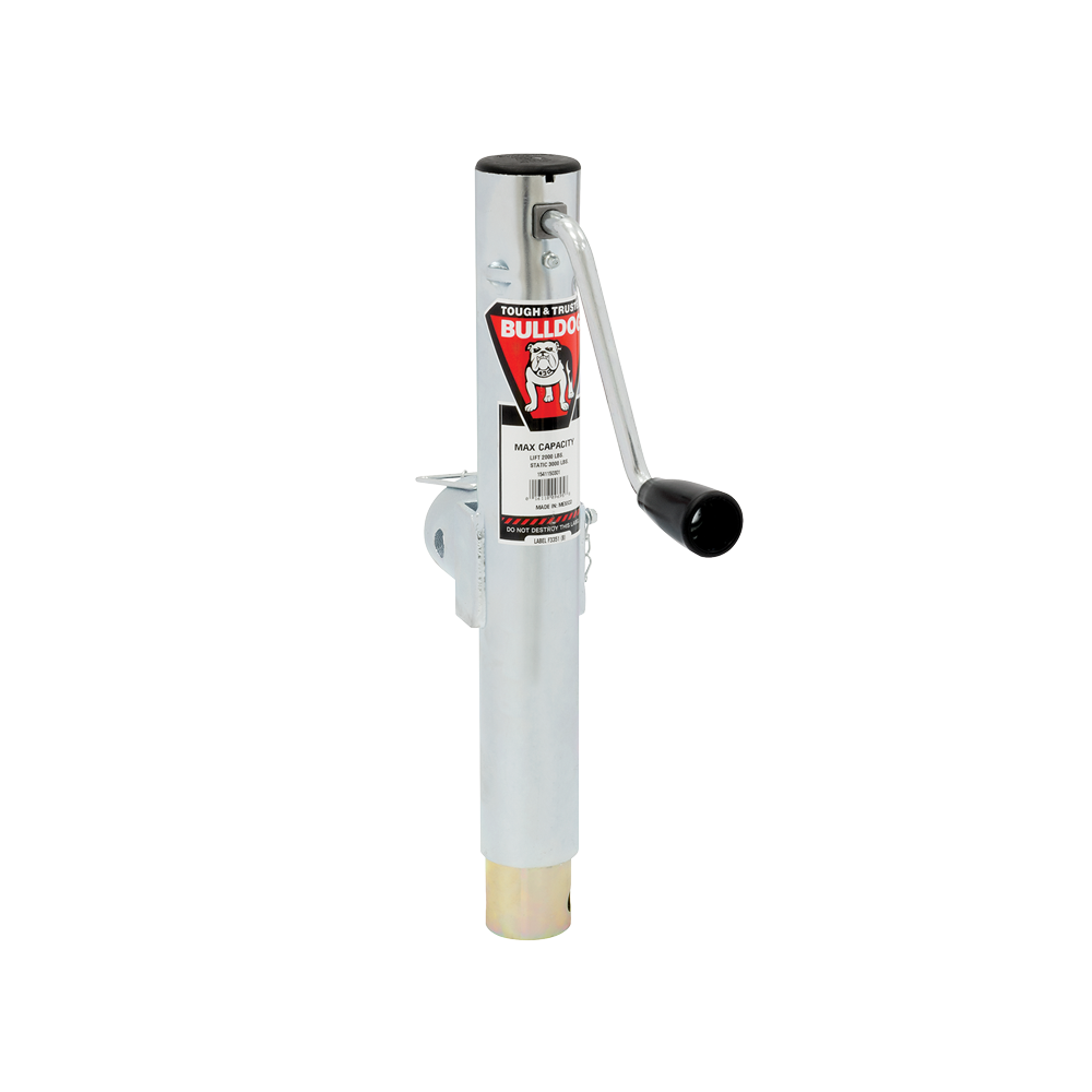 1541150301 BULLDOG Round Trailer Jack, Side Mount, 2,000 lbs. Lift Capacity, Side Wind, Weld-On, 10 in. Travel