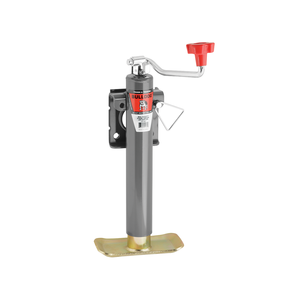171401 BULLDOG Round Trailer Jack, Side Mount, 5,000 lbs. Lift Capacity, Top Wind, Weld-On, 10 in. Travel