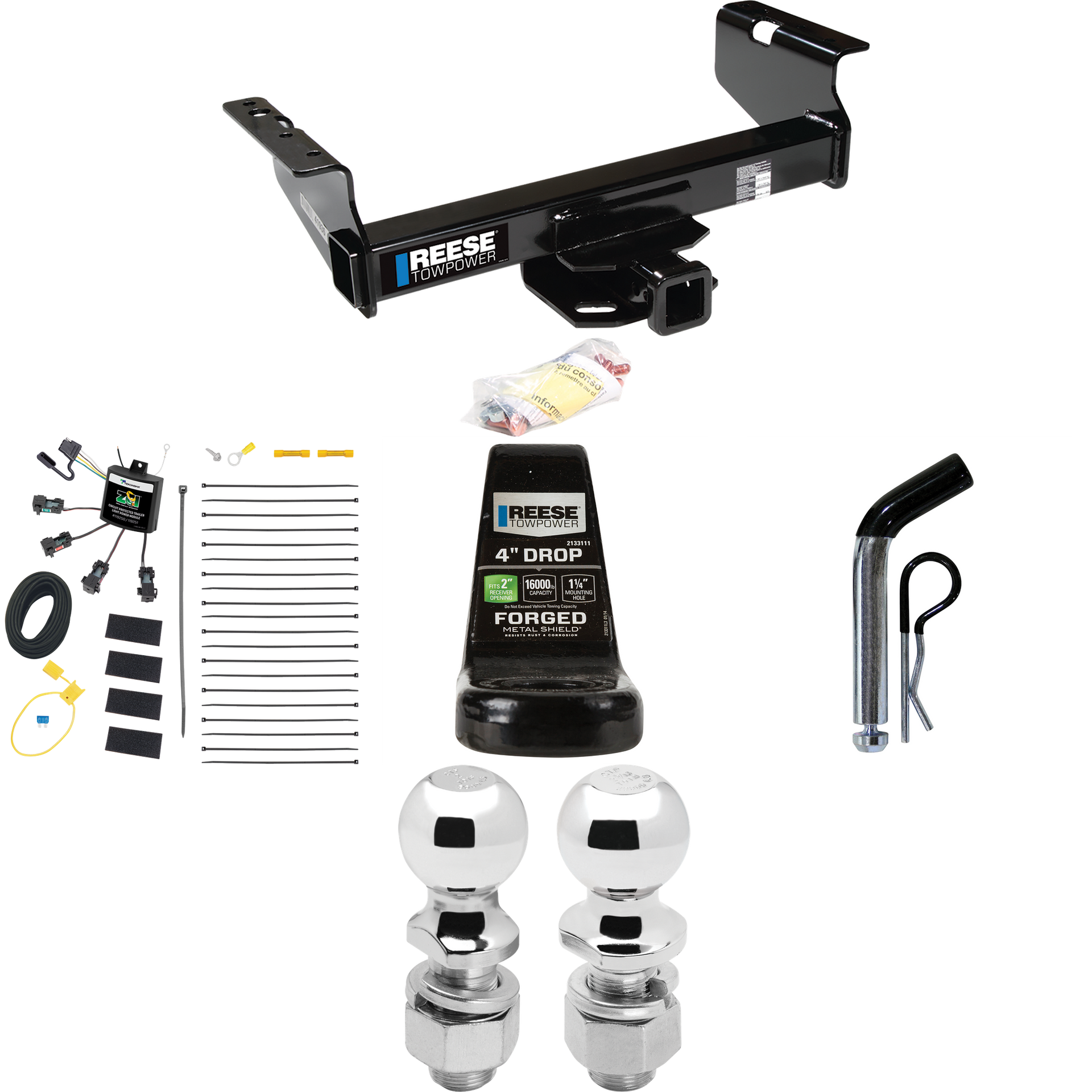 Bundle Info: Fits 2007-2023 GMC Sierra 3500 HD Trailer Hitch Tow PKG w/ 4-Flat Zero Contact "No Splice" Wiring Harness + Ball Mount w/ 4" Drop + Pin/Clip + 2" Ball + 2-5/16" Ball (For Cab & Chassis, w/34" Wide Frames Models) By Reese Towpower
